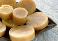 LemonSchafSchafsmilchseife mit äth. Melissen- und Lemmongrasöl beduftet. Die Färbung, bräunlich grün, entsteht durch Tonerde. Überfettung: ca. 8% Preis: 6.50 € / 100g |